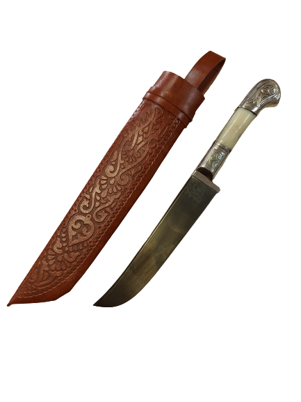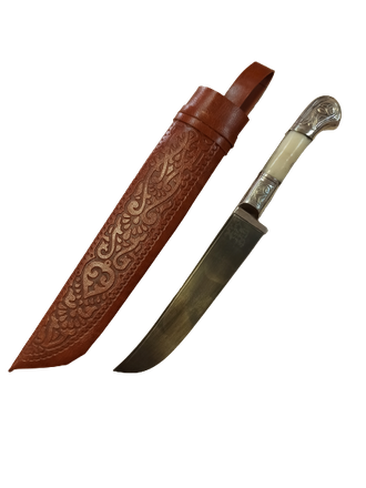 Пчак арт10 средний гарда и нав латунь гравировка кость Ерма ШХ15, 15-17см