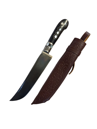 Пчак арт11 афганка вогнутый, гарда мельхор с гравировкой со вставкой Ерма, рог архара