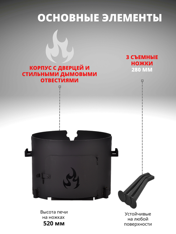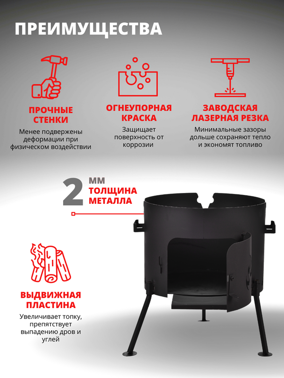 Печь под казан 320мм (под казан 6-8л) сталь 2мм с дверцей без трубы