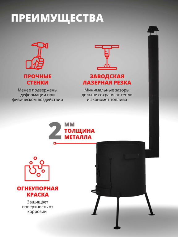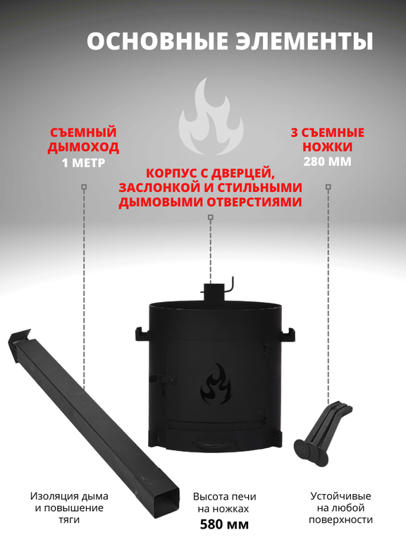Печь под казан с трубой и поддувалом 10-12 л (360 мм.) сталь 2 мм